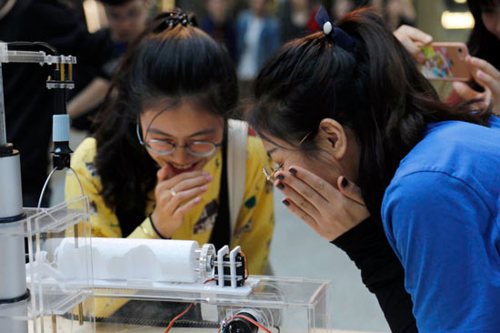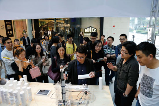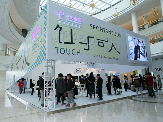 1月4日-8日期間,“世界觸手可及”藝術(shù)展免費(fèi)對(duì)外開(kāi)放,17位不同類(lèi)似年輕藝術(shù)家/團(tuán)隊(duì)聯(lián)合發(fā)聲,呈現(xiàn)了一批還未被大規(guī)模商業(yè)化的作品。值得一提的是,名為“打開(kāi)的盒子”的展廳被直接嵌入在購(gòu)物商場(chǎng)這樣的公共空間。展廳從“開(kāi)放”到“私密”的過(guò)渡也體現(xiàn)了電信網(wǎng)絡(luò)不但具有開(kāi)放性,還具有私密、安全性。展出的作品也形成從互動(dòng)體驗(yàn)到靜態(tài)觀看的關(guān)系變化,令觀眾在觀展過(guò)程中形成視覺(jué)、觸覺(jué)、聽(tīng)覺(jué)等多重感官的藝術(shù)體驗(yàn)。
