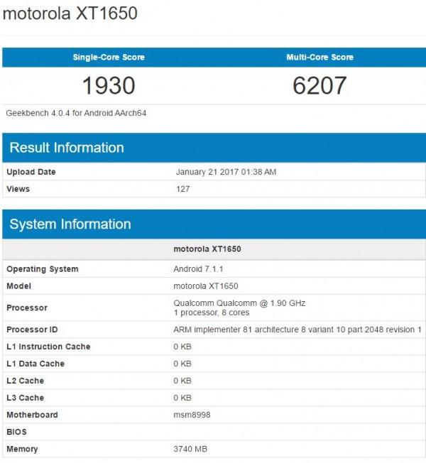 MOTO Z(2017)跑分曝光:采用驍龍835處理器