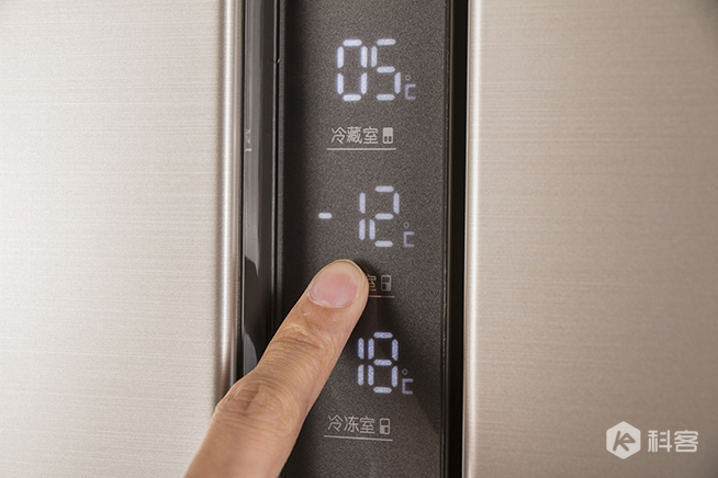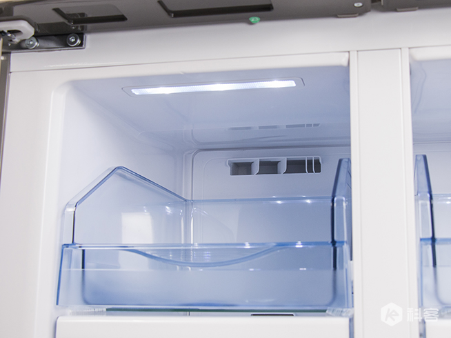 十字對(duì)開(kāi)的這款海信冰箱提供3溫區(qū)8抽屜結(jié)構(gòu),食材分類(lèi)游刃有余,上方冷藏室容積達(dá)297升,存儲(chǔ)大瓶飲料乃至大塊頭水果均不在話(huà)下;下方的冰冷室(左)和變溫室(右)均為81升,加在一起即459升。多空間的設(shè)計(jì)能讓美味分門(mén)別類(lèi),有效降低串味。不過(guò)略有不足的是下方的冰冷室與變溫室里面長(zhǎng)得一模一樣,不便于用戶(hù)清晰區(qū)隔,評(píng)測(cè)人員也是花了半天時(shí)間才在觸控面板的小圖標(biāo)上搞清對(duì)應(yīng)關(guān)系,建議大家使用時(shí)可通過(guò)冰箱貼等技巧增加辨識(shí)度。