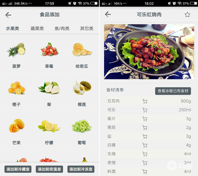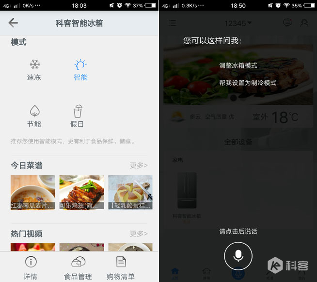 聚好連App的功能并不僅限于以上提到的冰箱溫度和模式調(diào)節(jié),還提供語(yǔ)音操控支持,并且用戶(hù)可設(shè)置冰箱三室現(xiàn)有的食材,根據(jù)需要還能在App中快速進(jìn)行食材在線(xiàn)購(gòu)買(mǎi)(并有菜譜信息提供)。實(shí)測(cè)期間我們發(fā)現(xiàn)App中指向的電商SKU還不夠豐富,比如想買(mǎi)草莓和葡萄居然都沒(méi)有,只提供了草莓飲料、葡萄酒等相關(guān)選項(xiàng),隨后換成雞蛋進(jìn)行測(cè)試,也只有三款商品可選而已,顯然還不能滿(mǎn)足多樣化需求的用戶(hù)采購(gòu)。