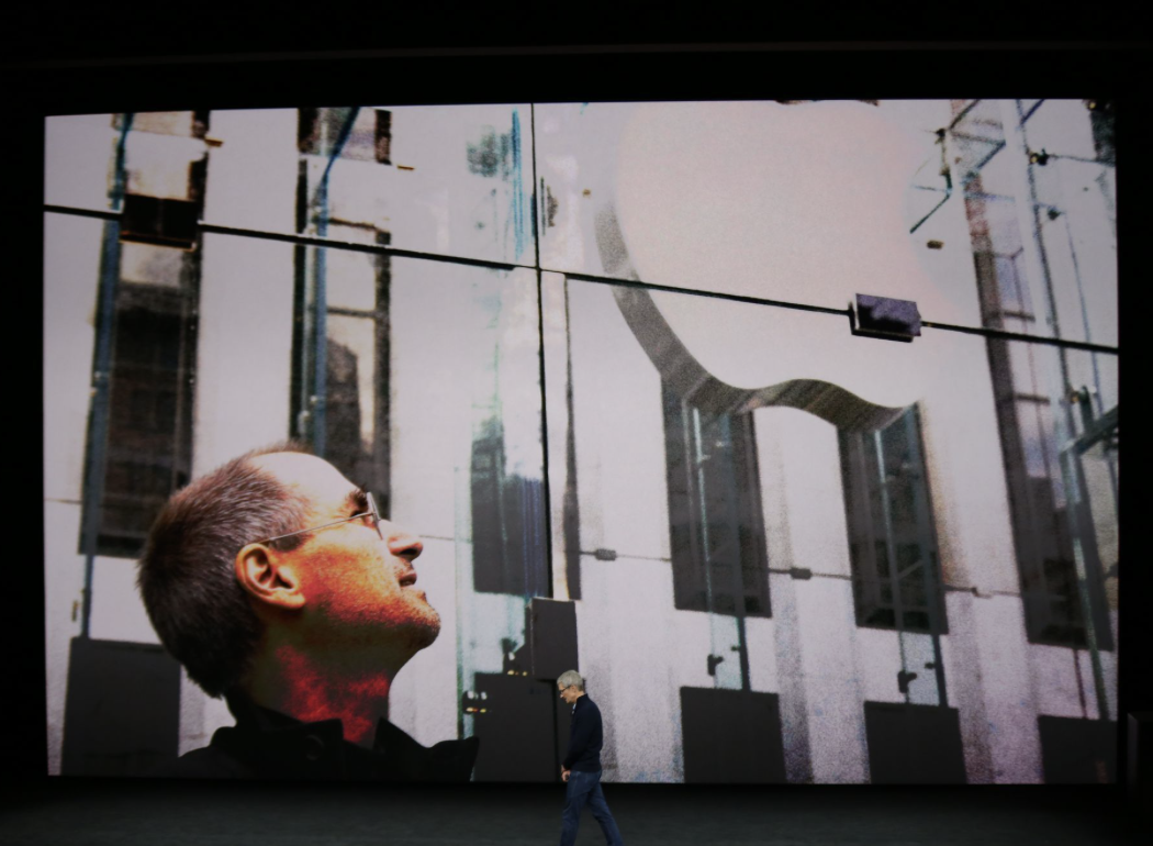 和過往蘋果發(fā)布會的常見套路不同,這次蘋果CEO蒂姆·庫克首先以緬懷蘋果之父史蒂夫·喬布斯作為開場白,約5分鐘動情的前奏迎來現(xiàn)場第一輪掌聲。(本文現(xiàn)場圖片來自The Verge)