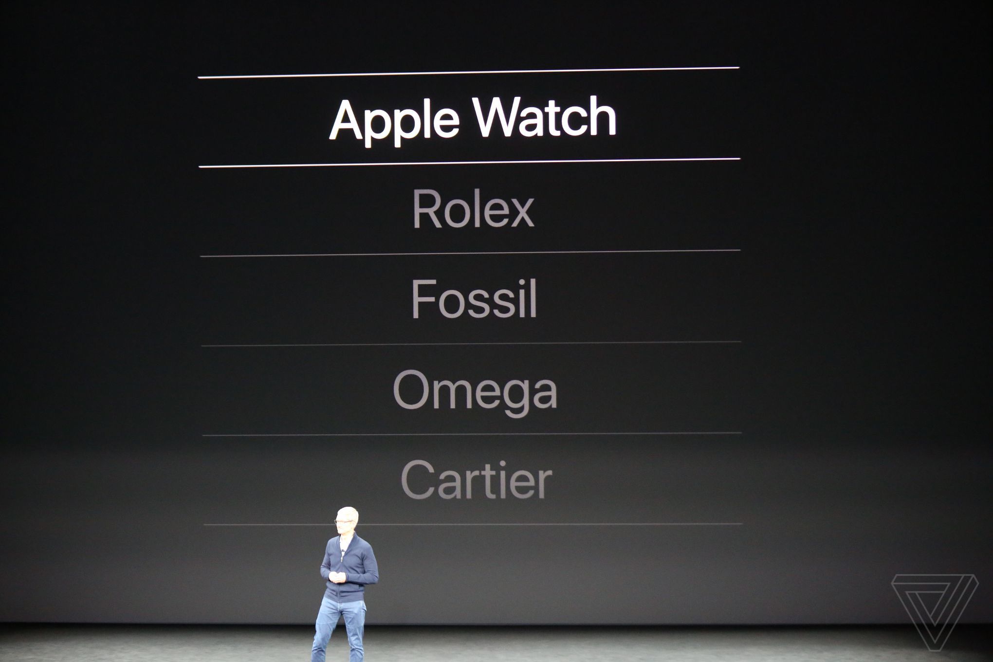 來到新產(chǎn)品環(huán)節(jié),首先是Apple Watch,庫克公布蘋果已成為全球第一大手表品牌,注意了,不只是和智能手表比較!另外Apple Watch的客戶滿意度高達(dá)97%!