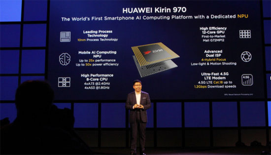 本月華為正式公布麒麟970芯片的細節(jié),這枚SoC除了擁有更強的性能指標和網(wǎng)絡(luò)通信能力之外,更大的亮點在于NPU神經(jīng)網(wǎng)絡(luò)處理器的運用,其專用處理器提供AI人工智能相關(guān)運算的支持,包括可實現(xiàn)深度神經(jīng)網(wǎng)絡(luò)的本地端計算,且能效比驚人。根據(jù)已知數(shù)據(jù)顯示,處理相同的AI任務(wù),麒麟970的NPU運算可達其四個A73大核效能的50倍,性能優(yōu)勢達到25倍之多。