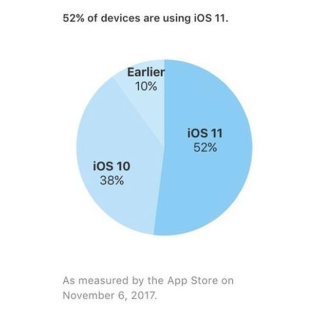 蘋果iOS 11操作系統(tǒng)正式推送更新不到兩個月,日前來自第三方數(shù)據(jù)公司Mixpanel給出的數(shù)據(jù)顯示,這一最新的iOS系統(tǒng)安裝普及率已達到52%。隨著iOS用戶越來越多,蘋果對iOS 11的版本更新頻率也明顯比往年頻繁,不斷完善的系統(tǒng)除了擁有更優(yōu)秀的體驗之外,也帶來眾多新功能的支持,比如科客記者下面要單獨介紹的“家人共享”功能升級。