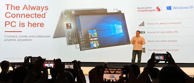 華碩公司首席執(zhí)行官沈振來在現(xiàn)場公布了搭載驍龍835平臺的Windows筆記本NovaGo,作為全球首款支持千兆級LTE網(wǎng)絡的筆記本電腦,華碩NovaGo使用驍龍X16 LTE調(diào)制解調(diào)器,網(wǎng)絡連接速度能達到現(xiàn)有設(shè)備的3-7倍。得益于驍龍平臺低能耗的優(yōu)勢,華碩NovaGo可實現(xiàn)最長30天的待機,連續(xù)播放視頻的時間達到22小時。