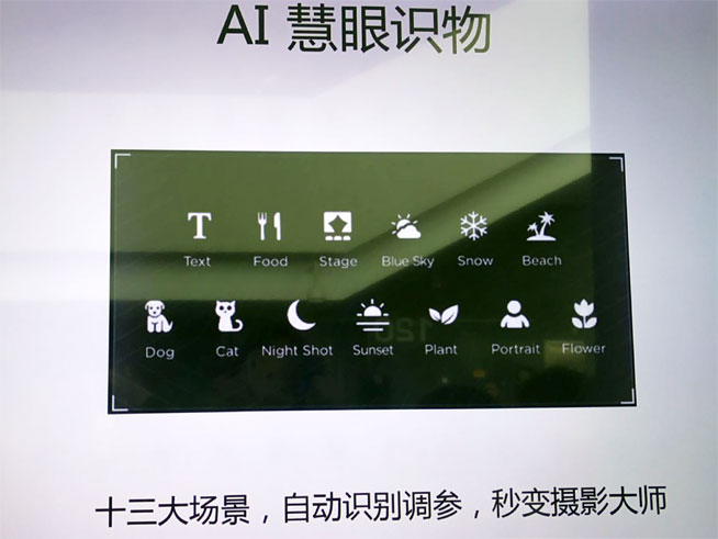 華為Mate 10系列的AI慧眼識物借助其搭載的麒麟970處理器獨有的NPU來完成,簡單來說就是靠高效率的人工智能運算,讓手機智能識別十余種拍攝場景,自動匹配拍照參數,用戶只需專注取景本身,按下快門后即能獲得效果給力的照片。