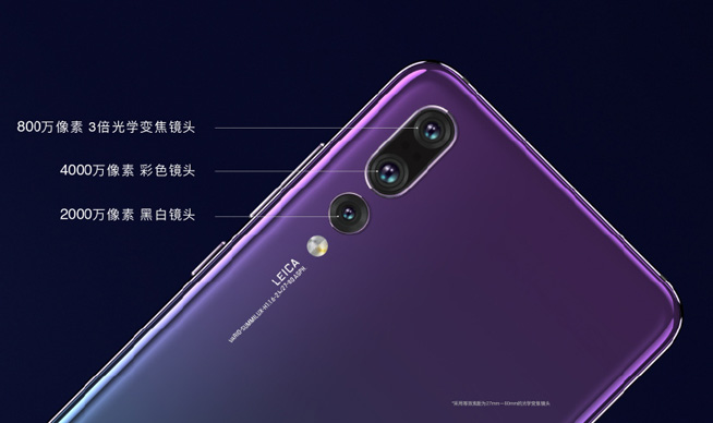 以更具行業創新性的華為P20 Pro為例,該機首度在智能手機中引入后置徠卡三攝像頭設計,背面自上而下的三枚鏡頭依次為800萬像素3倍光學變焦鏡頭、4000萬像素彩色鏡頭以及2000萬像素黑白鏡頭。在光變鏡頭與彩色鏡頭之間還隱藏了激光發射/接收器,實現激光對焦,三枚鏡下方嵌入閃光燈及色溫傳感器。結合AI計算能力,還可以提供4D預測追焦技術從而實現更迅速的對焦和抓拍,加上光學防抖的加持確??焖龠\動場景下也能擁有清晰成像。