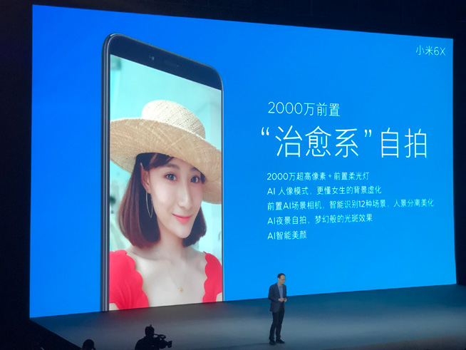 至于小米6X的前置攝像頭,林斌透露其實(shí)規(guī)格與副攝像頭相同,也為IMX376,達(dá)到2000萬像素并配有柔光燈,提供AI單攝背景虛化,并且專門針對女性自拍以及12項背景進(jìn)行更多優(yōu)化,號稱是“更懂女生的前置人像模式”。