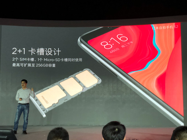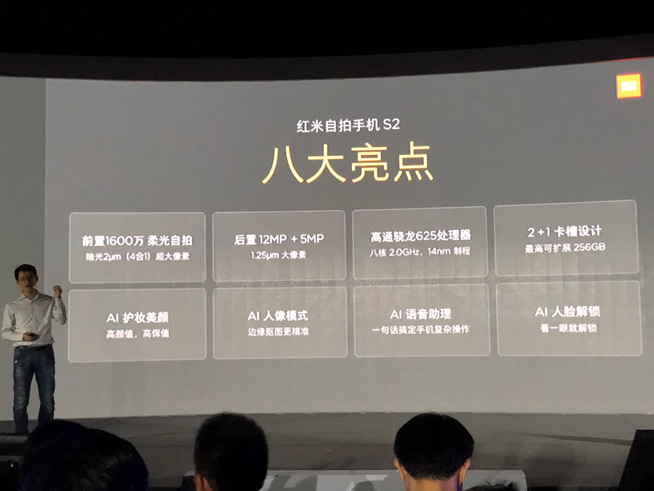 5月10日下午,小米公司聯(lián)合蘇寧易購在南京發(fā)布新品紅米S2,主打自拍,售價999元/3GB+32GB,1299元/4GB+64GB,對標OPPO和vivo線下1500-2500元的主打機型A3與Y85,突出高性價比的優(yōu)勢。