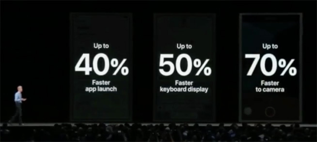 根據(jù)蘋果官方的介紹,iOS 12能為舊設(shè)備的拍照提速70%,App啟動(dòng)速度快40%,鍵盤提速達(dá)50%,背后除了大量優(yōu)化以外,蘋果的芯片團(tuán)隊(duì)還讓CPU的能效比更高。不過說到CPU智能調(diào)節(jié)能效,很容易讓人聯(lián)想起此前iPhone鬧得沸沸揚(yáng)揚(yáng)的電池門風(fēng)波,iOS 12大幅度提升速度之余是否會(huì)在特定場景下降頻節(jié)能,后續(xù)可能會(huì)是大家持續(xù)關(guān)注的話題。