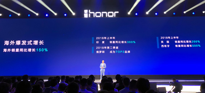 榮耀總裁趙明首先分享了今年以來榮耀手機取得的一些成績,包括上半年繼續保持國內互聯網品牌第一,取得上半年銷量與銷售額雙冠軍;今年6月榮耀在中國整體手機市場銷量份額第三,618斬獲雙冠王;海外市場榮耀手機銷量同比增長150%,俄羅斯市場躋身第二。趙明表示,從2018開始的未來三年,榮耀手機目標是做全球Top 5手機品牌,同時中國市場要沖擊前三。