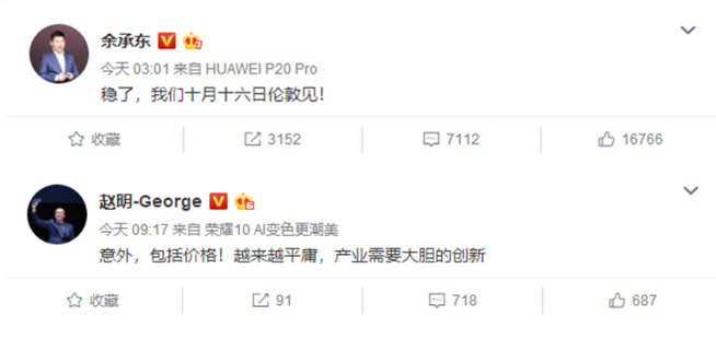 華為消費者業(yè)務(wù)CEO余承東率先在微博上表態(tài):“穩(wěn)了,我們十月十六日倫敦見!”榮耀總裁趙明隨后也在微博上表示:“意外,包括價格!越來越平庸,產(chǎn)業(yè)需要大膽的創(chuàng)新。”對于蘋果最有力的競爭對手華為和榮耀而言,此次乏善可陳的蘋果新品發(fā)布會的確稱得上是一個“大好消息”。
