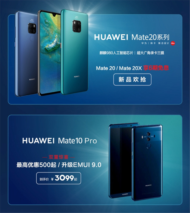 雙11之際,華為Mate系列旗艦手機給到消費者多重利好:全新亮相的Mate 20和Mate20 X提供六期免息的優惠,而持續熱銷一年的Mate 10 Pro享受同樣六期免息之余,還迎來EMUI 9.0系統的升級,更是最高可享500元的優惠。