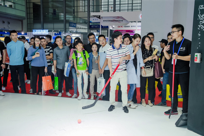 展會現(xiàn)場人氣頗高的5G低時延冰球區(qū),通過5G+AI的技術,將5G網(wǎng)絡的高速率、低時延特性與人工智能完美結合,實現(xiàn)機器人守門員對冰球方向實時判斷,迅速攔截冰球實現(xiàn)守門動作,吸引了多位觀展嘉賓上場,體驗一把冬奧會冰球項目。