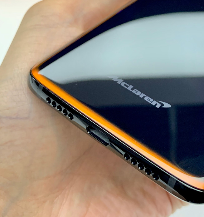 當(dāng)然,更為搶眼的莫過于背面邊緣的U形橙條,橙色乃邁凱倫專屬色,出現(xiàn)在黑色為基調(diào)的手機上頗為醒目,在U形橙條包圍處還有McLaren標(biāo)識,兩者一同組成了一加6T邁凱倫定制版的中重要特征。
