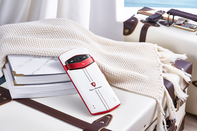 手機(jī)背部皮料特別定染成工藝要求極高的純白色,象征著蘭博基尼“純粹、極致”的品牌精神。而機(jī)身金屬部分色彩靈感則源于蘭博基尼故鄉(xiāng)——意大利,正紅色的金屬邊框彰顯意大利人熱情張揚(yáng)的個(gè)性。玻璃背飾上特別加入的碳纖維紋路設(shè)計(jì),常用于跑車和手表,與V型巴黎釘紋相互呼應(yīng),科技與奢華并存,再加上經(jīng)典的托尼洛·蘭博基尼金屬銘牌,搭配奪目的四顆18K鍍金鉚釘,處處細(xì)節(jié),無(wú)不精致。