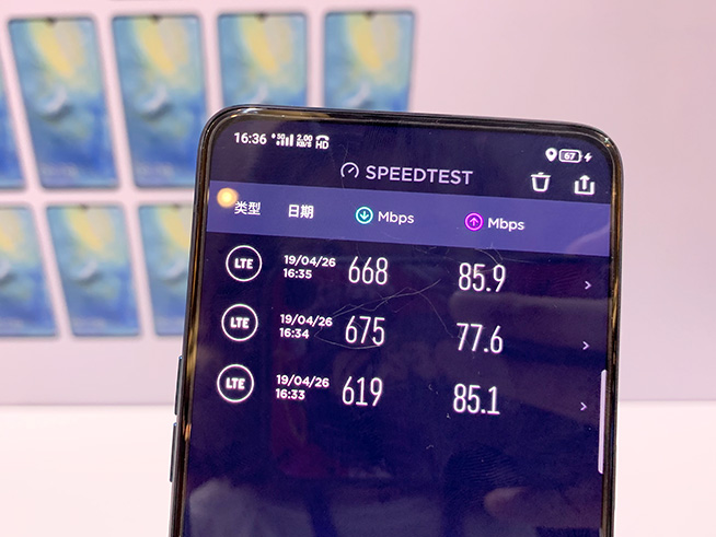 在現(xiàn)場(chǎng)的電信5G網(wǎng)絡(luò)下,兩款手機(jī)使用視頻App在線欣賞高清視頻均能做到“秒開”,下載100MB以內(nèi)的應(yīng)用,大都能在兩秒左右就能完成。隨后歡少使用SpeedTest應(yīng)用在不同時(shí)段進(jìn)行多次測(cè)速,結(jié)果發(fā)現(xiàn)兩款機(jī)型的下載速度都穩(wěn)定在600Mbps(即75MB/s)以上;上行的話,OPPO 5G Reno能達(dá)到平均80Mbps(10MB/s)的表現(xiàn)。需要特別說明的是,由于現(xiàn)場(chǎng)的電信5G網(wǎng)絡(luò)頻繁用于5G高清直播、5G云VR、5G云游戲、5G行業(yè)應(yīng)用等眾多應(yīng)用,測(cè)速成績(jī)僅供參考。