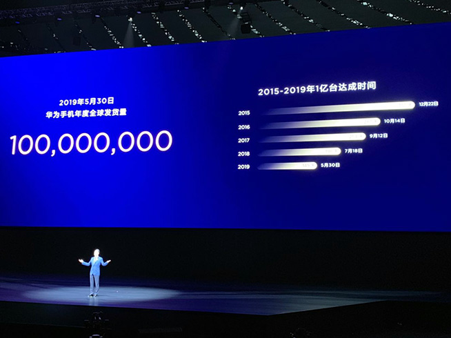 2019年僅用時(shí)5個(gè)月(149天),華為手機(jī)本年度的全球發(fā)貨量已超過1億臺,相比去年破億的時(shí)間縮短了49天。