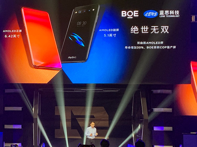努比亞Z20正面屏幕為6.42英寸,算上背面的5.1英寸屏幕,號稱擁有超過100%的屏占比。而為了進(jìn)一步提升正面屏幕的極致顯示效果,努比亞Z20采用了京東方首個COP商用解決方案,邊框收窄至2.3mm,并聯(lián)合藍(lán)思科技解決了副屏透光率的難題。
