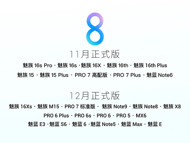 Flyme 8的正式版計(jì)劃在11月開始升級(jí),包括16s Pro、16s等新舊款旗艦機(jī)均可以首批支持,12月則會(huì)加入數(shù)十款舊機(jī)型的升級(jí)。