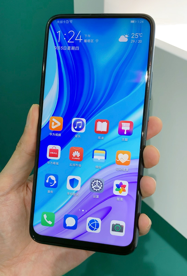華為暢享10 Plus配備6.59英寸無劉海全面屏,屏占比達(dá)到91%,為此專門選用升降式攝像頭設(shè)計(jì),沒記錯(cuò)的話這也是華為品牌在國內(nèi)的首款升降鏡頭手機(jī)。
