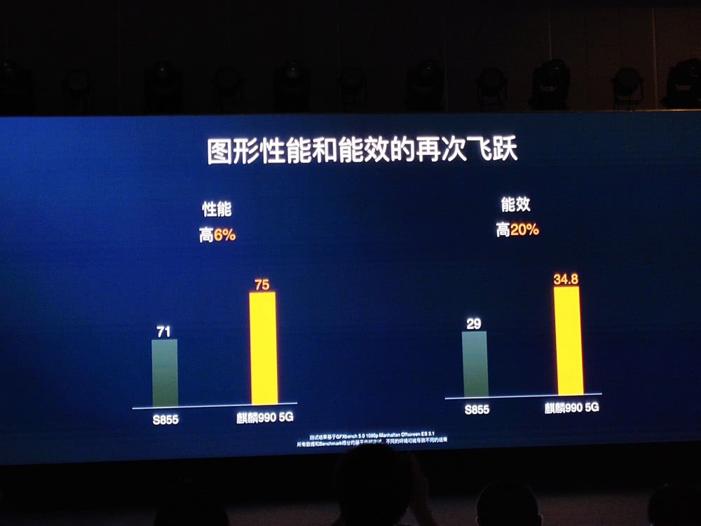 憑借16核Mali-G76 GPU的搭載,麒麟990的圖形性能與能效均得到飛躍,相比驍龍855的話,分別高了6%及20%。