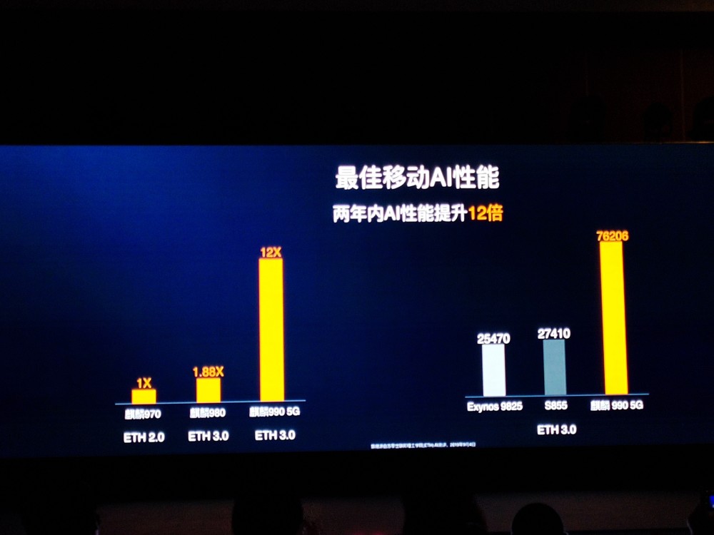 另外,麒麟990的ISP和AI均有加強(qiáng),ISP全球首發(fā)手機(jī)端BM3D單反級(jí)圖像降噪技術(shù),而5G版的NPU為雙大核+1微核的設(shè)計(jì),短短兩年麒麟芯片的NPU AI性能提升12倍,并且擁有最佳端側(cè)AI能效。