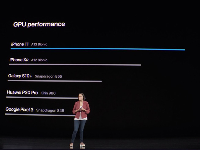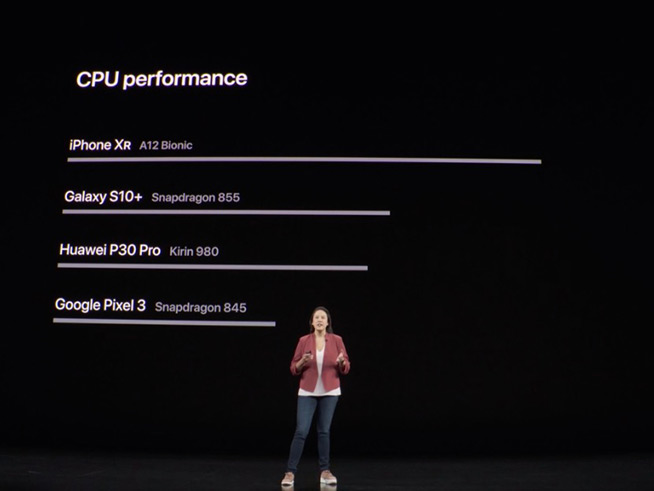 在介紹iPhone 11所搭載的的A13仿生處理器期間,蘋果罕見的與友商進行比較,包括三星、華為、高通的SoC同時上榜,不過蘋果只是比較了華為上一代的麒麟980芯片,而本月初剛剛發(fā)布的麒麟990,由于還沒有商用機型上市,則不在對比列表當中。