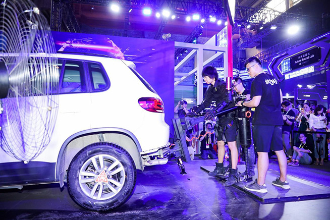 圖/淘寶造物節(jié)上,外骨骼機(jī)甲商家抬起了一輛1.4噸的SUV
