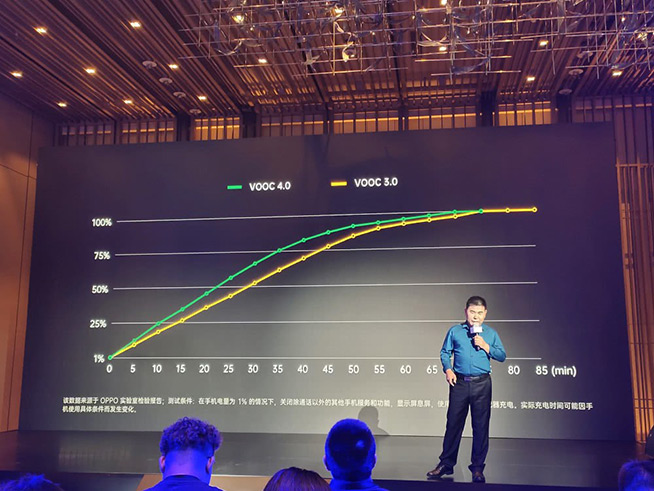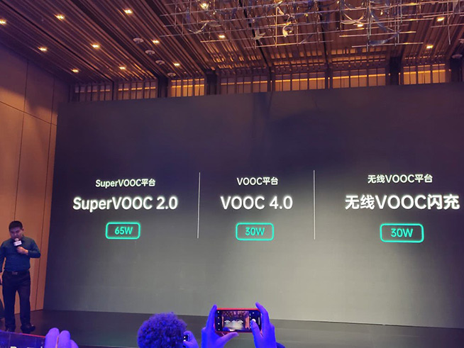 OPPO SuperVOOC2.0擁有65W峰值功率,為10伏6.5安、串聯(lián)雙電芯的解決方案,30分鐘可充滿4000mAh電池電量,即便是邊充邊玩,32分鐘也能充滿。至于說別人有更快的,OPPO回應(yīng):我們實(shí)驗(yàn)室也有更快的!