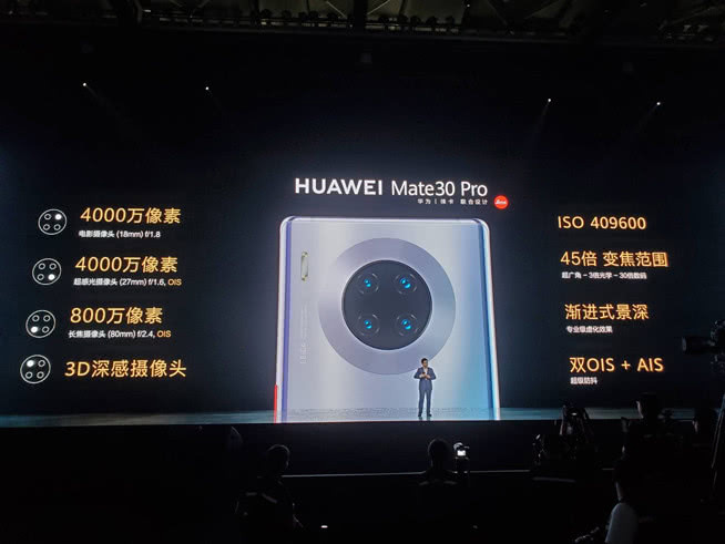 華為Mate30 Pro率先運用雙4000萬像素的后置相機配置,連同另外兩枚長焦鏡頭和3D景深鏡頭形成全新四攝組合。