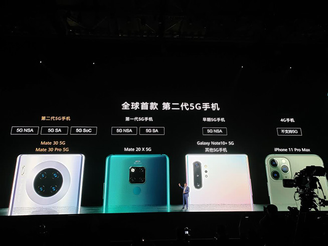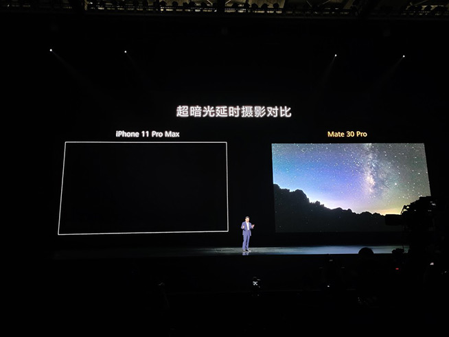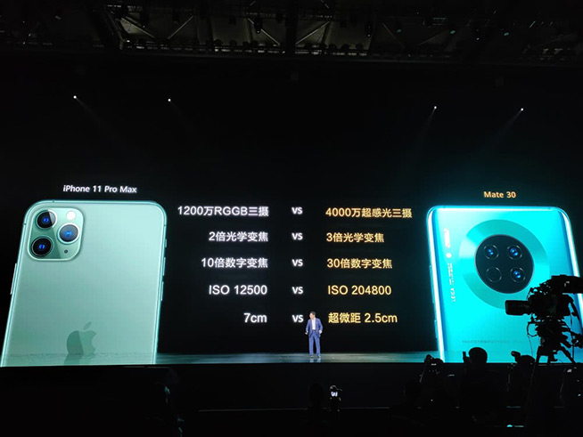 至于華為Mate30的相機配置也不俗,余承東稱其與頂配的iPhone 11 Pro相比也有各種領(lǐng)先。