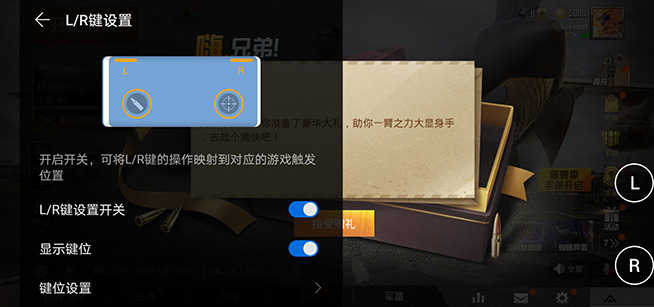 首先當然是開啟L/R鍵開關,接下來通過設置鍵位設置將L和R鍵自行拖動至個人需要操控映射的位置,比如常見的開槍或開鏡,保存之后無需重啟就能馬上奏效。接下來,華為Mate30 Pro側邊的兩端便能充當類似游戲手柄L/R鍵的功效,輕松實現(xiàn)四指火力全開,方便玩家進行更復雜的游戲操作。有了如此方便的側屏游戲觸控之后,玩吃雞等射擊類游戲時四指壓槍也變得容易,瞄準、擊殺效率相應也能提升,對于大多數(shù)玩家而言,無疑是上分利器。?