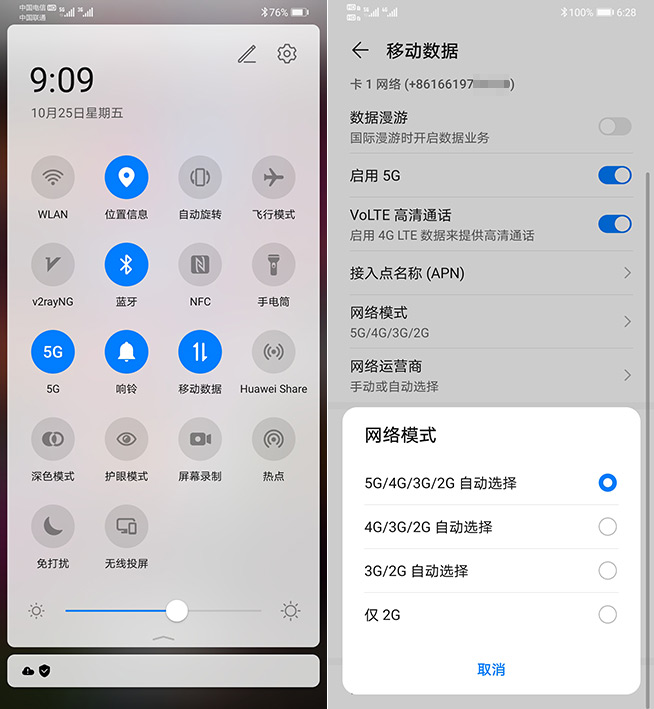 經(jīng)過我們的實測,確認(rèn)華為Mate30 5G的雙nano SIM卡槽可盲插5G手機(jī)卡,用戶當(dāng)前選用SIM1為數(shù)據(jù)卡槽的話,對應(yīng)的SIM1便可以設(shè)置是否開啟5G,若選擇SIM2為數(shù)據(jù)卡槽,則5G開關(guān)轉(zhuǎn)至SIM2的設(shè)置中。也就是說,如果用戶當(dāng)前插入的雙卡都有5G,只需切換默認(rèn)移動數(shù)據(jù)卡槽即能指定使用哪張卡的5G數(shù)據(jù),并不需要另行插拔手機(jī)卡更換卡槽。