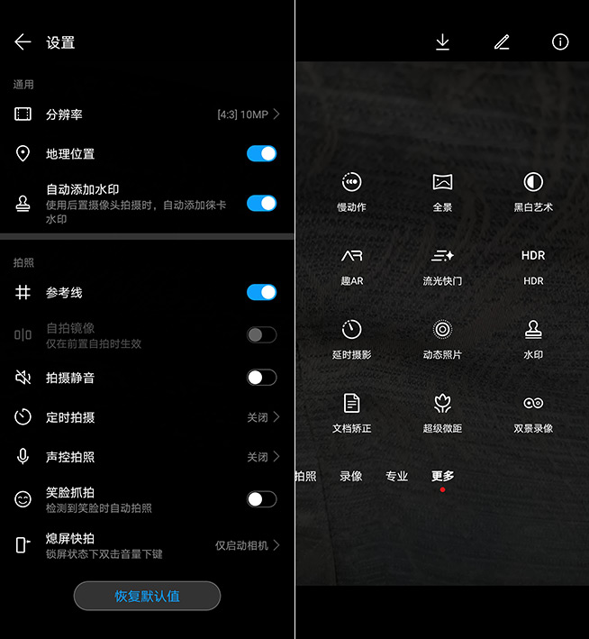 相機(jī)部分,華為Mate30 5G搭載的是后置超感光徠卡三攝,主攝為4000萬像素f/1.8光圈,1600萬像素超廣角鏡頭為f/2.2光圈,800萬像素長焦鏡頭f/2.4光圈,帶OIS光學(xué)防抖,提供3倍光學(xué)變焦和5倍混合變焦的能力與華為Mate30 Pro一致,并且數(shù)碼變焦可高達(dá)30倍。