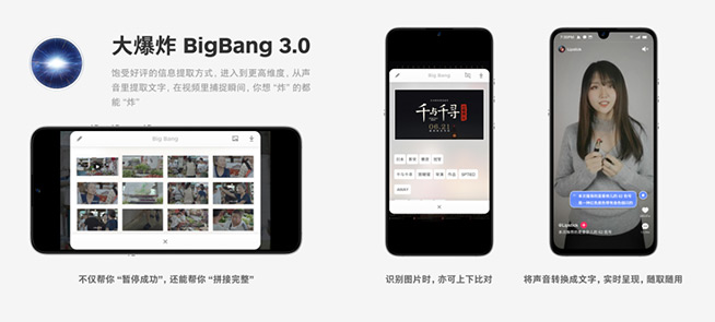 信息大爆炸時代,媒體形態(tài)越來越豐富,如何讓用戶打破壁壘,輕松實(shí)現(xiàn)內(nèi)容的提取和編輯是“大爆炸 3.0”要解決的問題。為此,“大爆炸 3.0”新增了“炸聲音”、“炸錄屏”兩項功能。“炸聲音”采用了聽見錄音轉(zhuǎn)文字技術(shù),可以從系統(tǒng)底層抓取聲音,將手機(jī)上播放的幾乎一切音頻內(nèi)容實(shí)時提取來轉(zhuǎn)換成字幕,實(shí)時轉(zhuǎn)寫最大 500 毫秒返回,最大化減少誤差的同時還能避免外界干擾,支持靜音模式下使用,適用于不方便聽取或播放音頻的場景。