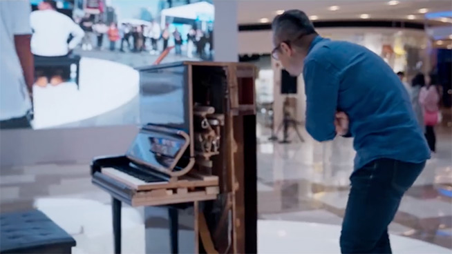 視頻的開頭首先突發(fā)奇想把一架完整的鋼琴一分為二,通過特殊的處理方式確保各一半的鋼琴仍能正常奏響之后,將半邊鋼琴分別運往上海和成都兩地。當(dāng)“另一半”不能在身旁的時候,剩下的另一半鋼琴還能彈奏出完整的天籟之音嗎??