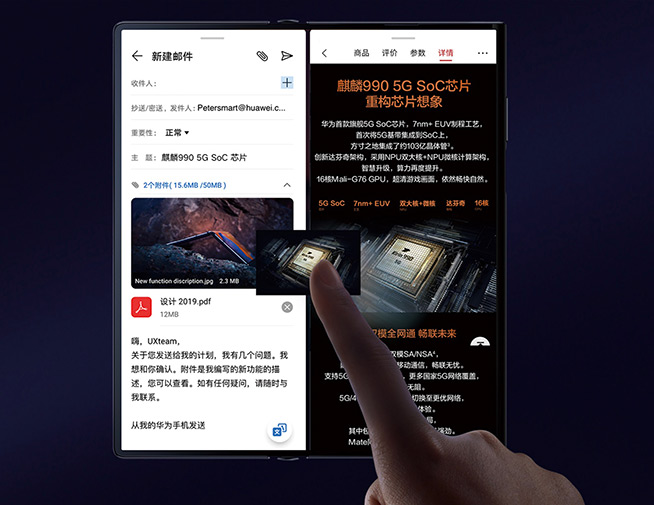 說(shuō)到多項(xiàng)針對(duì)性的硬件級(jí)提升,華為MateXs軟件層面的升級(jí)與創(chuàng)新更是可圈可點(diǎn)。圍繞折疊屏的特殊使用形態(tài),結(jié)合華為軟件團(tuán)隊(duì)在手機(jī)、平板、PC的大量研發(fā)成果,MateXs一方面強(qiáng)化了智慧分屏功能的適配性,多App的同屏運(yùn)行與切換更易使用,充分發(fā)揮了更大屏幕空間的優(yōu)勢(shì)。另一方面,分屏應(yīng)用支持文字、圖視頻等直接拖拽操作,實(shí)現(xiàn)高效協(xié)同。