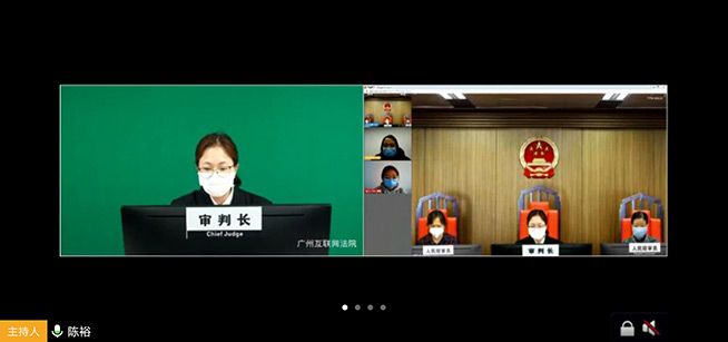 “經(jīng)判決…”,28日上午,張法官在線通過“YUE法庭”完成了案件宣判。多家媒體通過遠程在線觀摩這場關(guān)于版權(quán)的庭審。