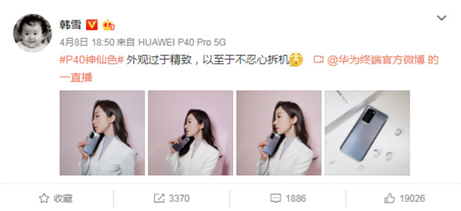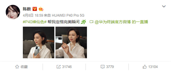設計與攝影,很多時候其實都是在追求美,而華為P系列手機這些年來正是聚焦并做好這兩大方向,憑借一款又一款出眾的產品,圈粉無數,甚至在娛樂圈也不例外。演員陳數、韓雪和孫怡第一時間入手冰霜銀,并于微博紛紛曬出喜提華為P40 Pro的小喜悅。