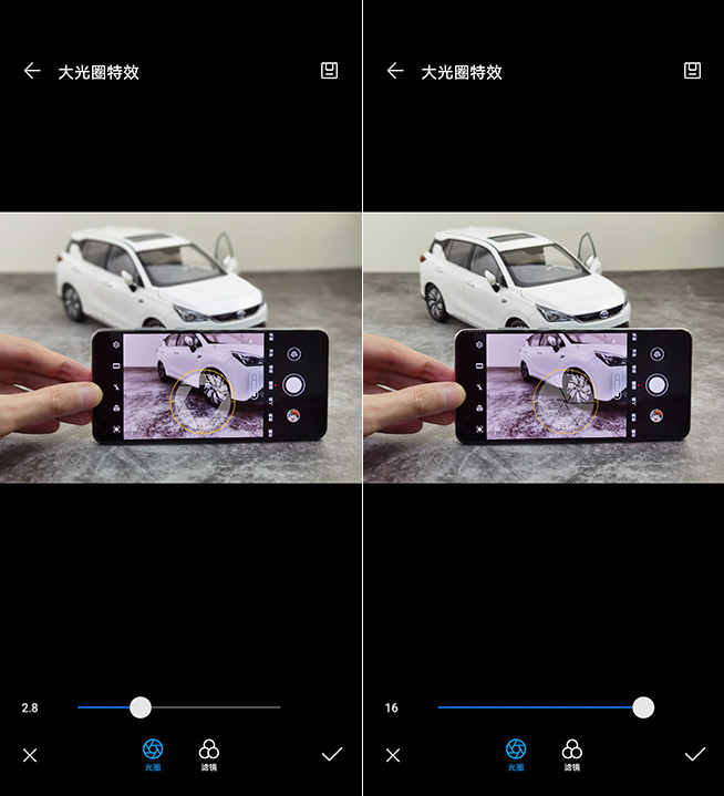 另外用戶也可以嘗試使用大光圈模式對近拍主體進行特寫,此時P40 Pro能夠調(diào)用1-3倍變焦,光圈范圍在0.95至16之間。由于在該模式下支持先拍照再對焦,其實可以在取景完成后直接按下快門,后期再自由調(diào)整對焦點和光圈,相當(dāng)于不用第三方PS軟件就可以直接實現(xiàn)進階的創(chuàng)作效果。