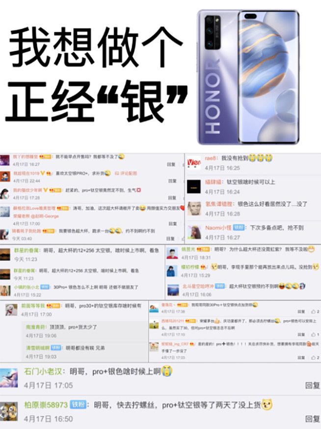 目前,榮耀30系列正在火爆預(yù)售中,場(chǎng)面十分火爆,不少用戶(hù)在榮耀手機(jī)微博蓋樓喊話(huà)。