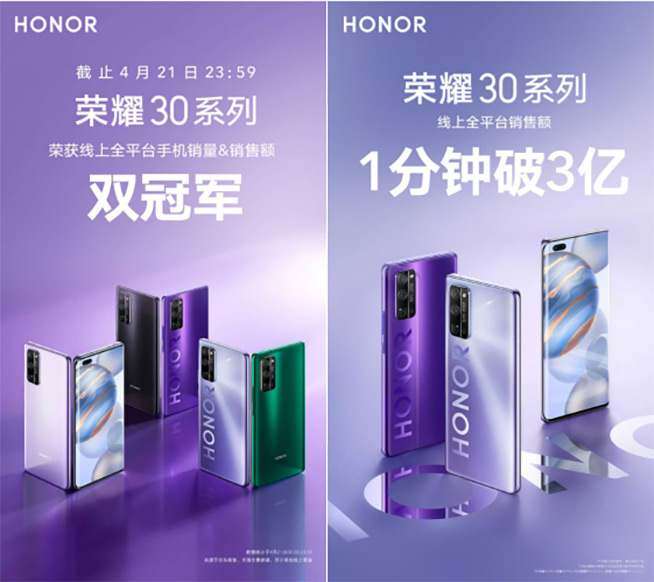 自發(fā)布以來,榮耀30系列就憑借著創(chuàng)新、領(lǐng)先的科技實力,備受廣大用戶們的好評。4月21日首銷僅1分鐘便在線上突破了3億銷售額,當天更是毫無懸念地斬獲了線上全平臺手機銷量&銷售額雙冠軍!而在榮耀30系列熱銷的背后,除了強悍的產(chǎn)品力,我們還看到了榮耀30系列在產(chǎn)品價值方面的延伸。