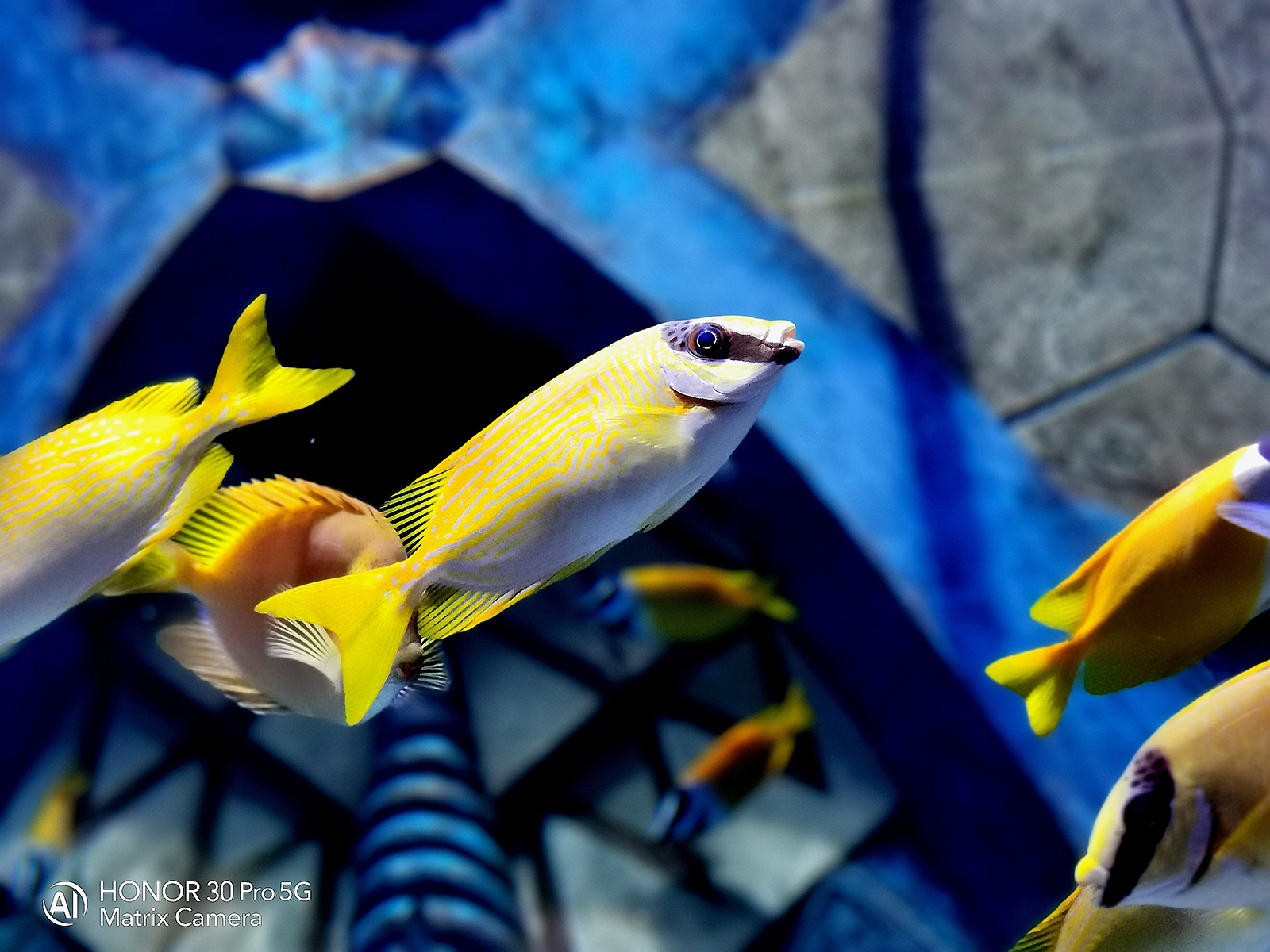 來到三亞室內的水族館,榮耀30 Pro這次挑戰(zhàn)的是運動軌跡多變的水生動物。在光線條件不算理想且隔著玻璃拍攝的條件下,水母、海洋魚游動的瞬間清晰記錄,背后彰顯自動對焦和追焦系統(tǒng)的優(yōu)越性能,讓清晰抓拍成為可能。