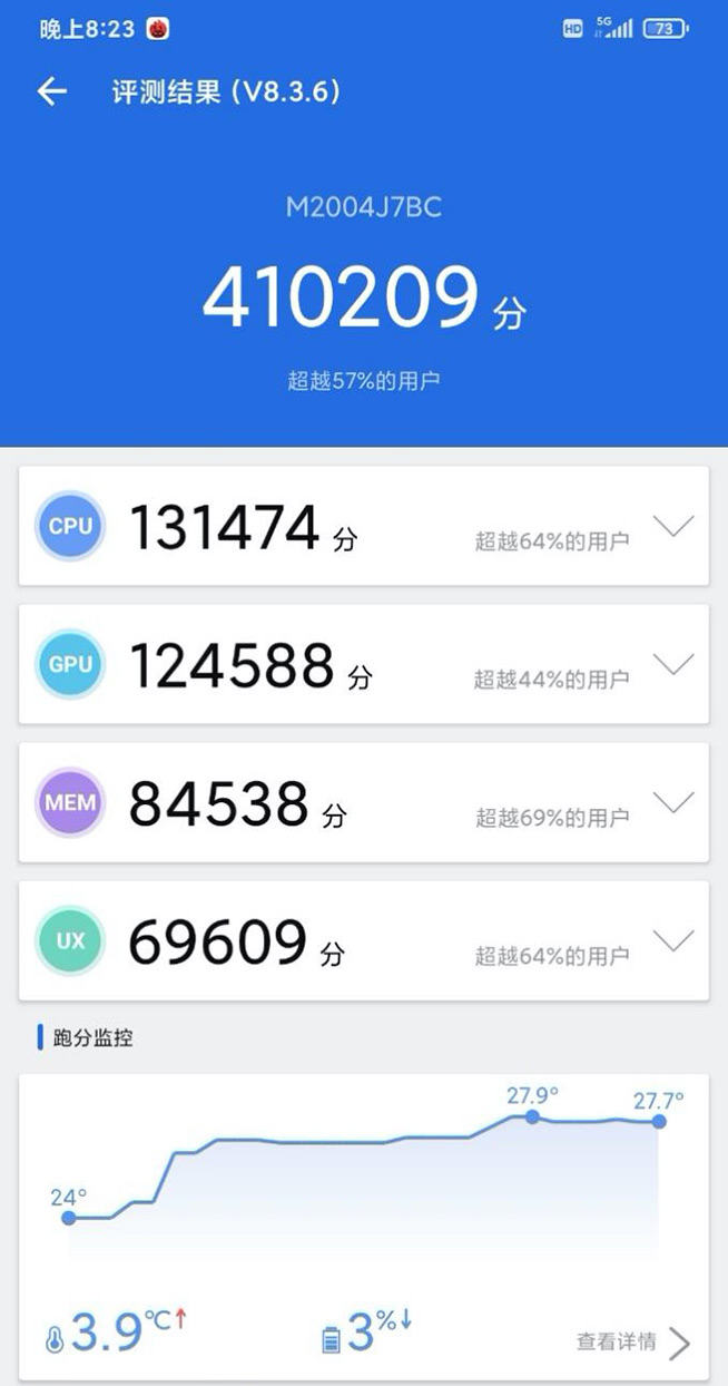 搭載天璣820芯片的終端,也是即將會在5月26日正式發(fā)布的Redmi 10X手機,目前在安兔兔評測錄得了超過41萬的好成績。