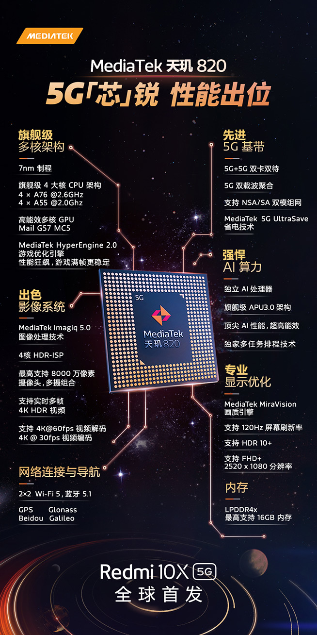 率先雙5G+安兔兔超41萬!天璣820發(fā)布,Redmi 10X全球首發(fā)