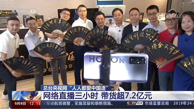 6月7日晚8點(diǎn),在央視網(wǎng)攜手國(guó)美聯(lián)合打造的《人人愛(ài)中國(guó)造》網(wǎng)絡(luò)直播活動(dòng)上,國(guó)美副總裁王俊洲、海爾副總裁李華剛等多位「中國(guó)制造」企業(yè)的品牌領(lǐng)袖齊聚直播間,一起推薦國(guó)貨好物,引發(fā)全民關(guān)注。作為“中國(guó)智造”中的佼佼者,榮耀也作為唯一受邀的手機(jī)品牌參加了此次活動(dòng),榮耀總裁趙明親自上臺(tái)帶貨。