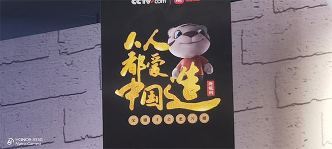 在直播中,榮耀30系列還現(xiàn)場(chǎng)展現(xiàn)了其50倍超穩(wěn)遠(yuǎn)攝的長(zhǎng)焦實(shí)力。直播間遠(yuǎn)處天花板上掛著了一張海報(bào),主持人認(rèn)為海報(bào)上的小字只是圓形圖案。榮耀總裁趙明使用榮耀30系列的50倍超穩(wěn)遠(yuǎn)攝清晰拍攝了海報(bào)上的小字。從實(shí)拍的圖片來(lái)看,海報(bào)上的小字真的是一覽無(wú)余,而且照片畫(huà)質(zhì)非清晰,不禁讓主持人驚呼點(diǎn)贊。