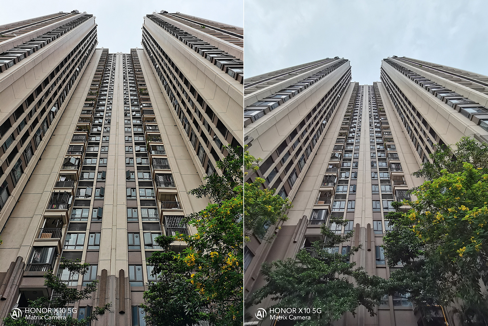 (榮耀X10樣張,左為1x模式,右為超廣角拍攝)