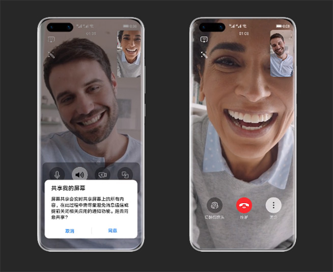 而華為P40系列全新升級(jí)的EMUI 10.1暢連+屏幕共享功能,也為當(dāng)下的高效溝通提供了全新的解決方案。暢連在音視頻通話基礎(chǔ)上,通過(guò)屏幕共享還能互相看到對(duì)方手機(jī)畫面,另外,暢連支持購(gòu)物類APP后,用戶直接在商品頁(yè)實(shí)時(shí)做標(biāo)記,輕松劃重點(diǎn),與好友共同討論等等,總體來(lái)說(shuō),比FaceTime這樣傳統(tǒng)且單一的視頻聊天方式更高效、直觀、有趣。